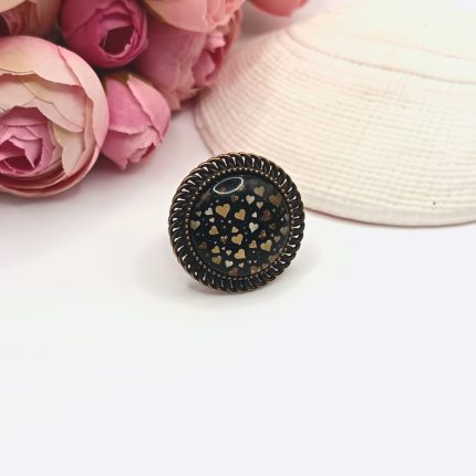 Antik bronz gyűrű – fekete, arany szívecskés lencsével 2000 Ft