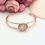 Rózsaarany karkötő – csillogó pink lencsével