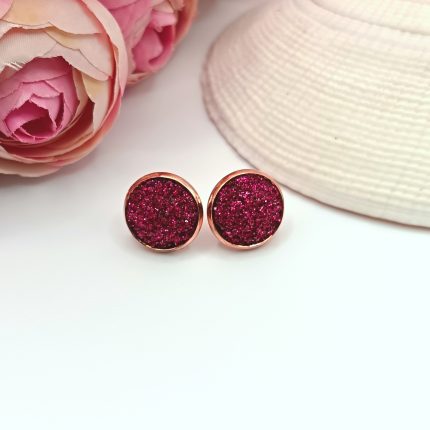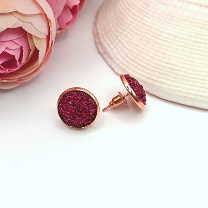 Rózsaarany bedugós fülbevaló – csillogó pink lencsével