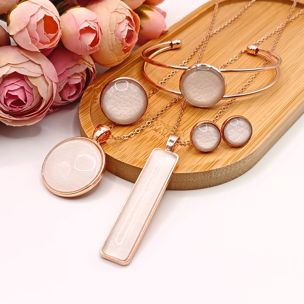 Rózsaarany nyaklánc – fehér textilbőr lencsével