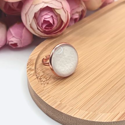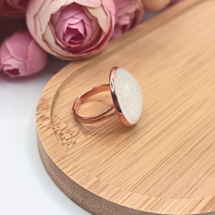 Rózsaarany gyűrű – fehér textilbőr lencsével
