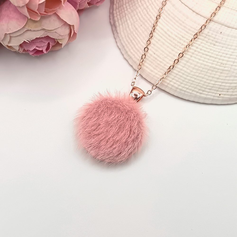 Kezdőlap Nyakláncok Rózsaarany nyaklánc – puha vintage rózsaszín szőrmével