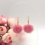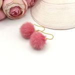 Rózsaköd – Szőrme labda fülbevaló arany kampóval