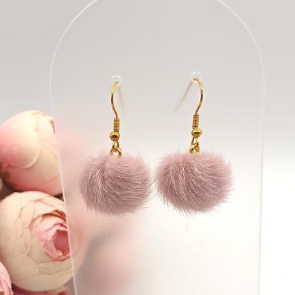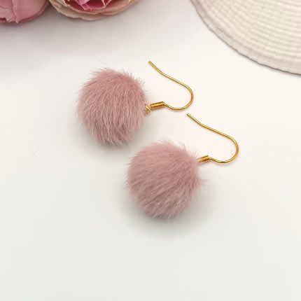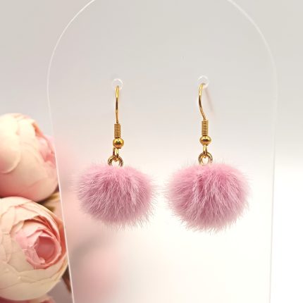 Rózsaszirom – Szőrme labda fülbevaló arany kampóval