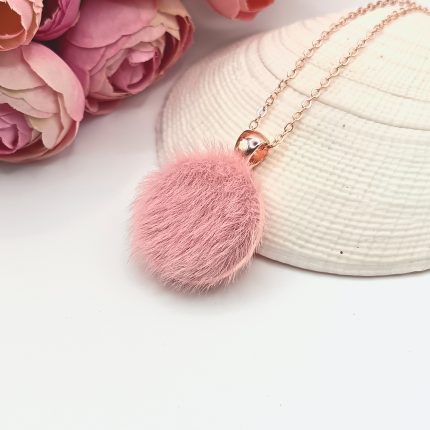 Rózsaarany nyaklánc – puha vintage rózsaszín szőrmével