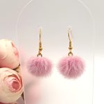 Rózsaszirom – Szőrme labda fülbevaló arany kampóval