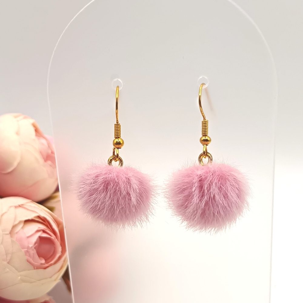 Kezdőlap Fülbevalók Akasztós fülbevaló Rózsaszirom – Szőrme labda fülbevaló arany kampóval