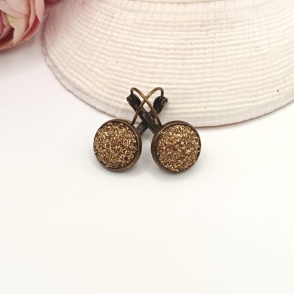 Antik bronz franciakapcsos fülbevaló – csillogó arany lencsével
