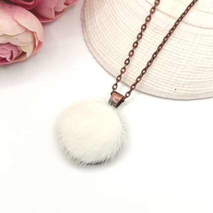 Antik réz nyaklánc – fehér szőrmével