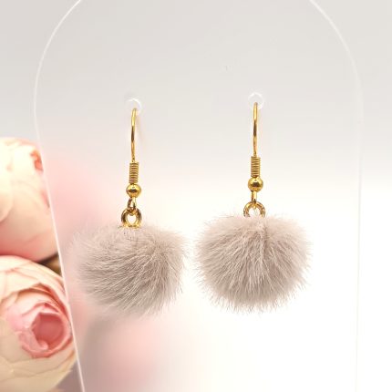 Szürke Felhő – Szőrme labda fülbevaló arany kampóval