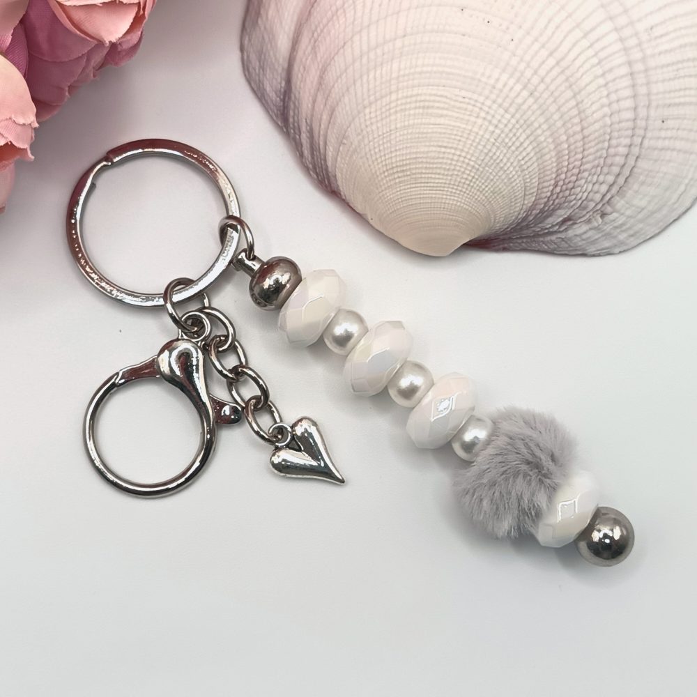 Ezüst kulcstartó – szürke / fehér
