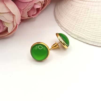 Arany bedugós fülbevaló – halványzöld üveg lencsével