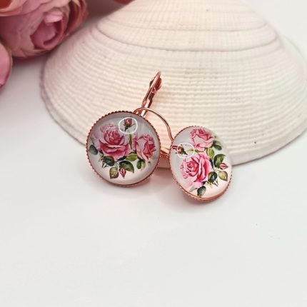 Rózsaarany franciakapcsos fülbevaló – rózsa mintás lencsével