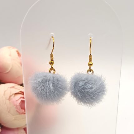 Szürke Felhő – Szőrme labda fülbevaló arany kampóval