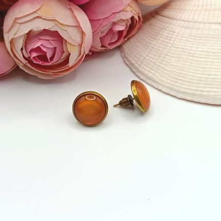 Antik bronz bedugós fülbevaló – narancs macskaszem lencsével
