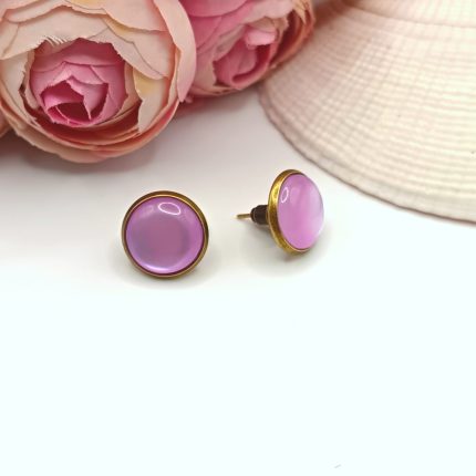 Antik bronz bedugós fülbevaló – halványlila macskaszem lencsével