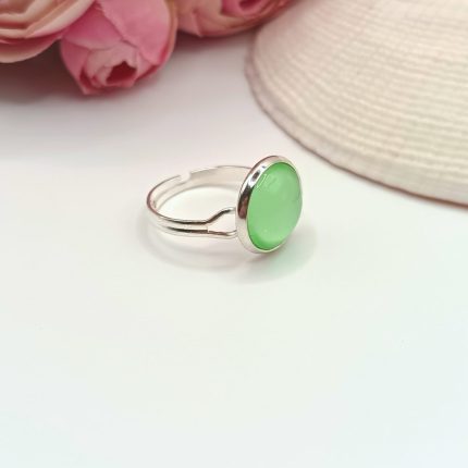 Ezüst gyűrű – világoszöld lencsével
