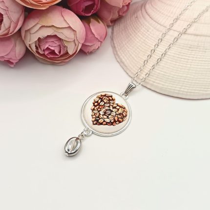 Ezüst nyaklánc – kávészív lencsével, ezüst kávészemgyönggyel