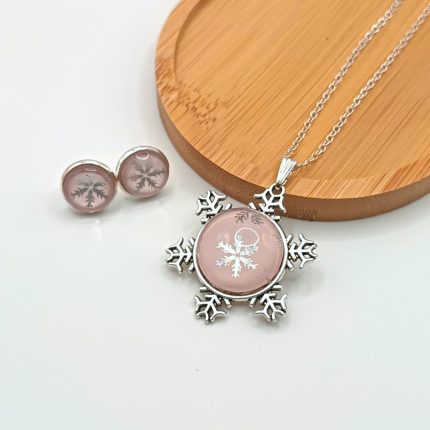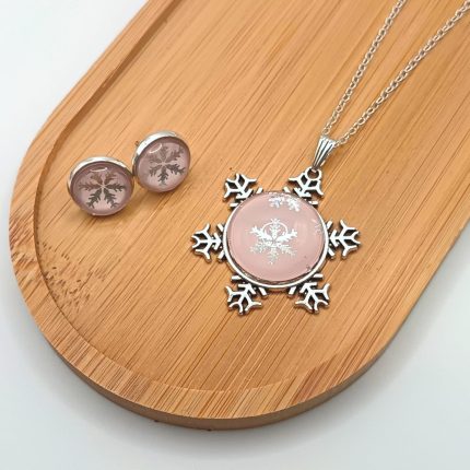 Ezüst ékszerszett – rózsaszín hópehely mintás textilbőrrel